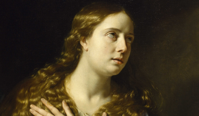 Cette Madeleine pénitente (musée de Rennes) participe de la même esthétique du refus de trop accorder au sensible: les mains ramenées sur la poitrine, les yeux tournés vers le ciel, le corps marqué par l’ascétisme et le jeûne, Marie-Madeleine a perdu les séductions charnelles qu’exerçaient encore souvent les Madeleines « baroques ». Le décor étouffant, le petit nombre d’objets — dont le crâne au premier plan, symbolisant la méditation sur la mort — ainsi que l’emploi des couleurs froides, contribuent aussi à rendre sensible l’austérité pieuse de la vie de Marie-Madeleine au désert.