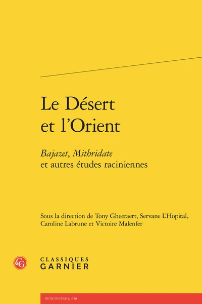 - Racine 1672 : Bajazet, Mithridate (colloque, 23–25 nov. 2022) — actes parus dans Le Désert et l’Orient. Bajazet, Mithridate et autres études raciniennes (Paris, Classiques Garnier, 2024).